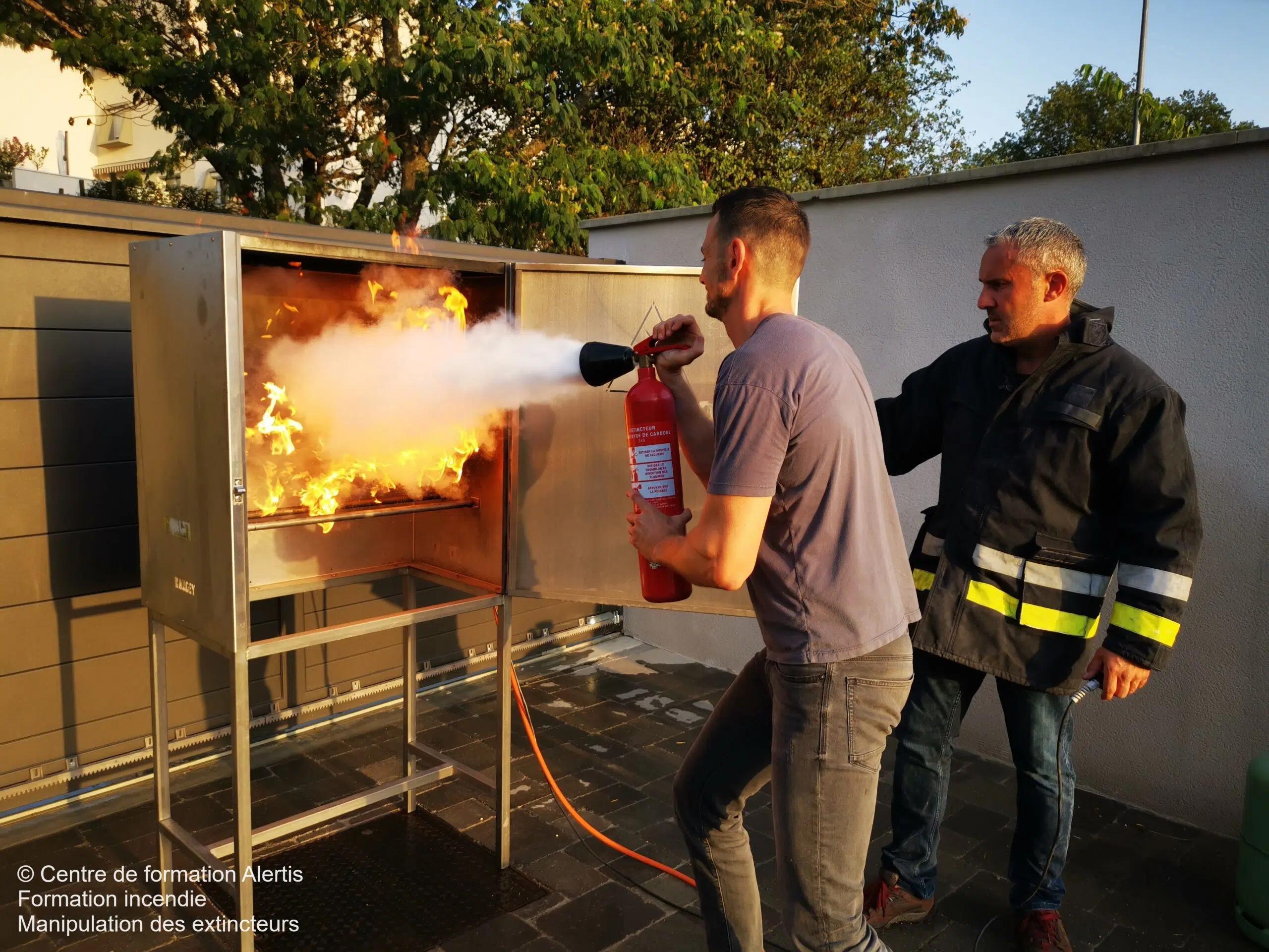 Les exercices pratiques réalisés lors de notre formation incendie sont: