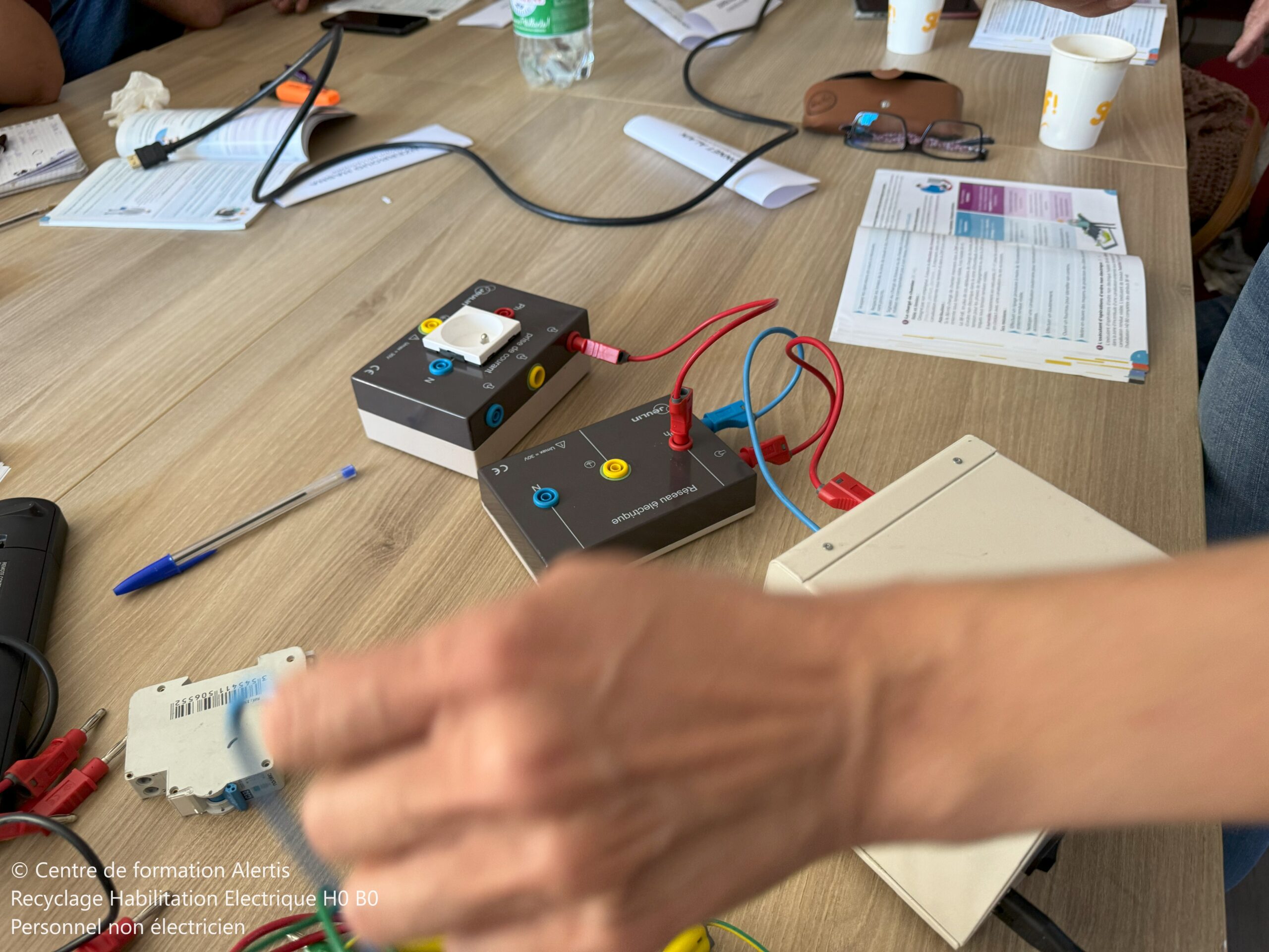 Evaluation formative réalisée à travers un QCM de 20 questions en fin de formation et à travers des mises en situations pratiques (remplacer un luminaire, réarmer un disjoncteur, brancher un boitier en attente, etc.) permettant d’apprécier leur capacité à opérer en toute sécurité conformément aux préconisations de la NFC 18-510