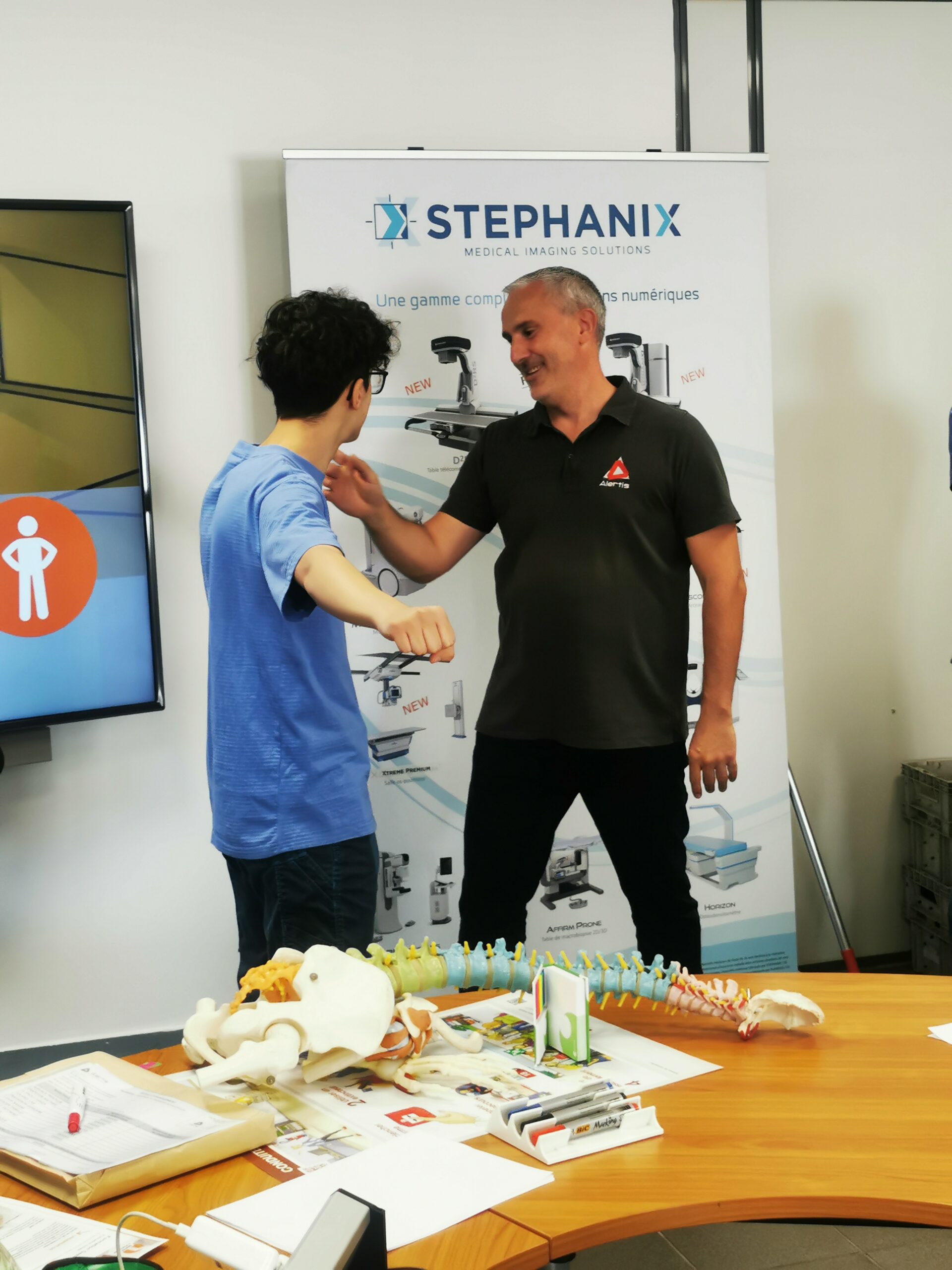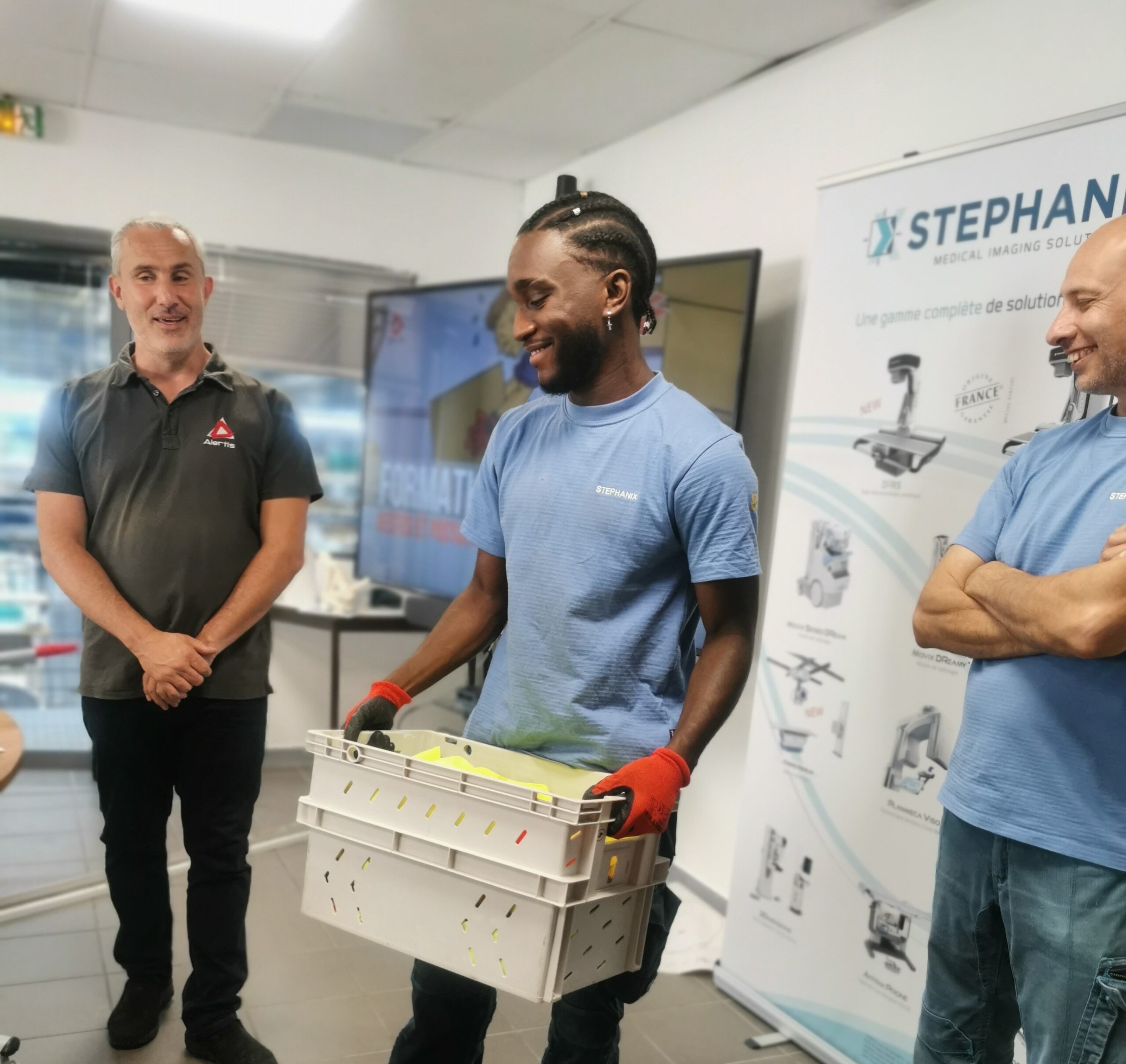 Alertis a acquis des chasubles qui sonnent ou qui vibrent lorsque le manutentionnaire adopte une mauvaise posture. Tous les apprenants passant sur les manutentions de charges inertes portent ce gilet.